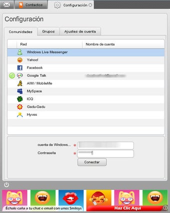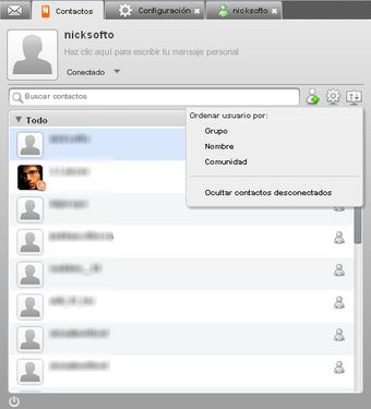 Una vez registrada tu cuenta e introducidos los datos de las redes con las que quieres conectar, Nimbuzz Webchat abrirá una ventana donde aparecerán unificados todos tus contactos. La cuenta Nimbuzz te permite unificarlos por redes y grupos, a modo de agenda.